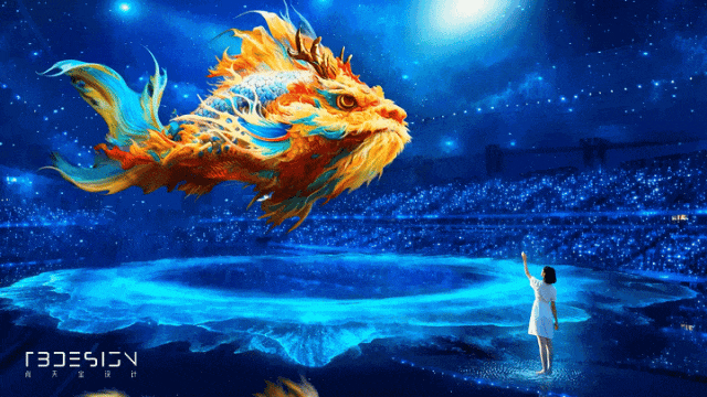 在十五运会开幕式上,当金色的光柱亮起,一只巨大的鳌鱼灵动地遨游于天海之间,如梦似幻,惊艳四座。这一极具震撼效果的“鳌”游天海画面,是如何实现的呢?