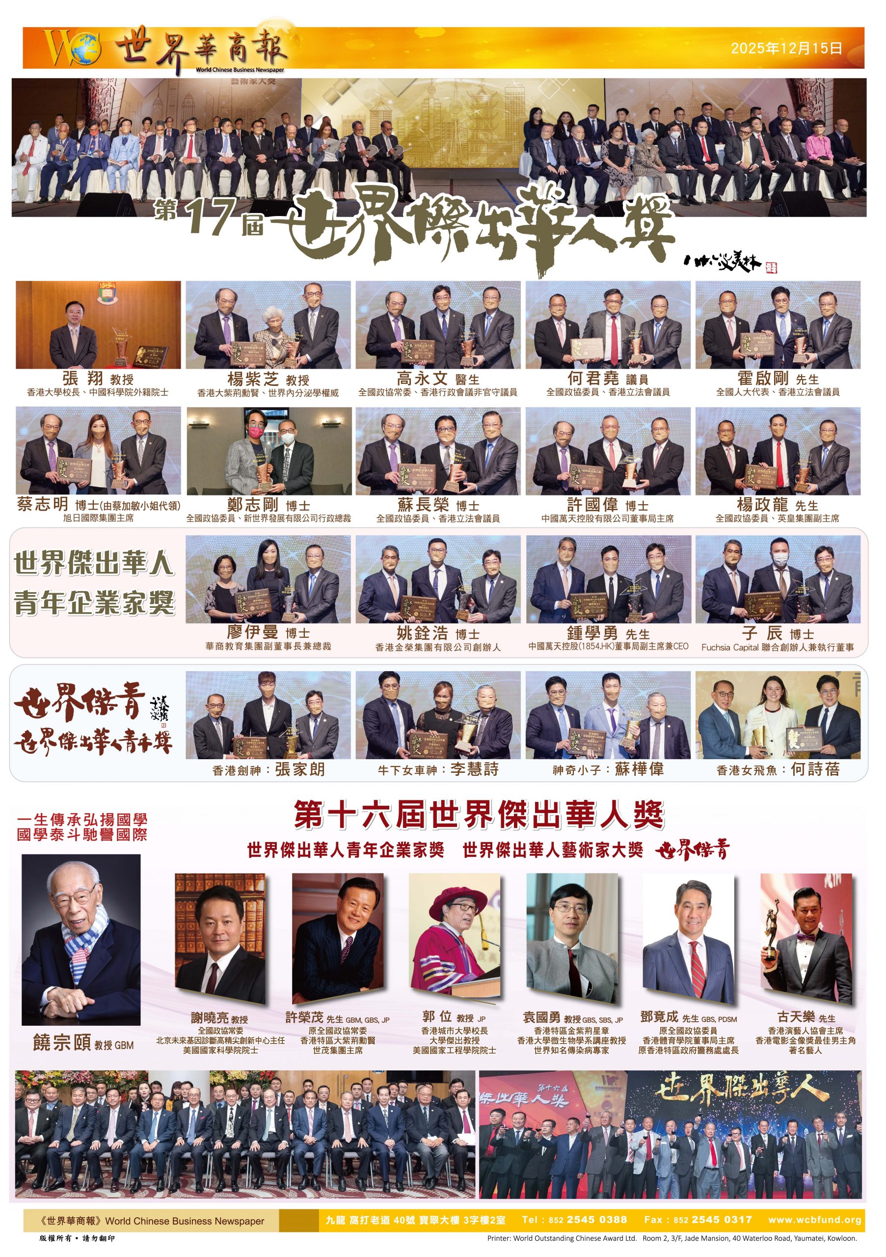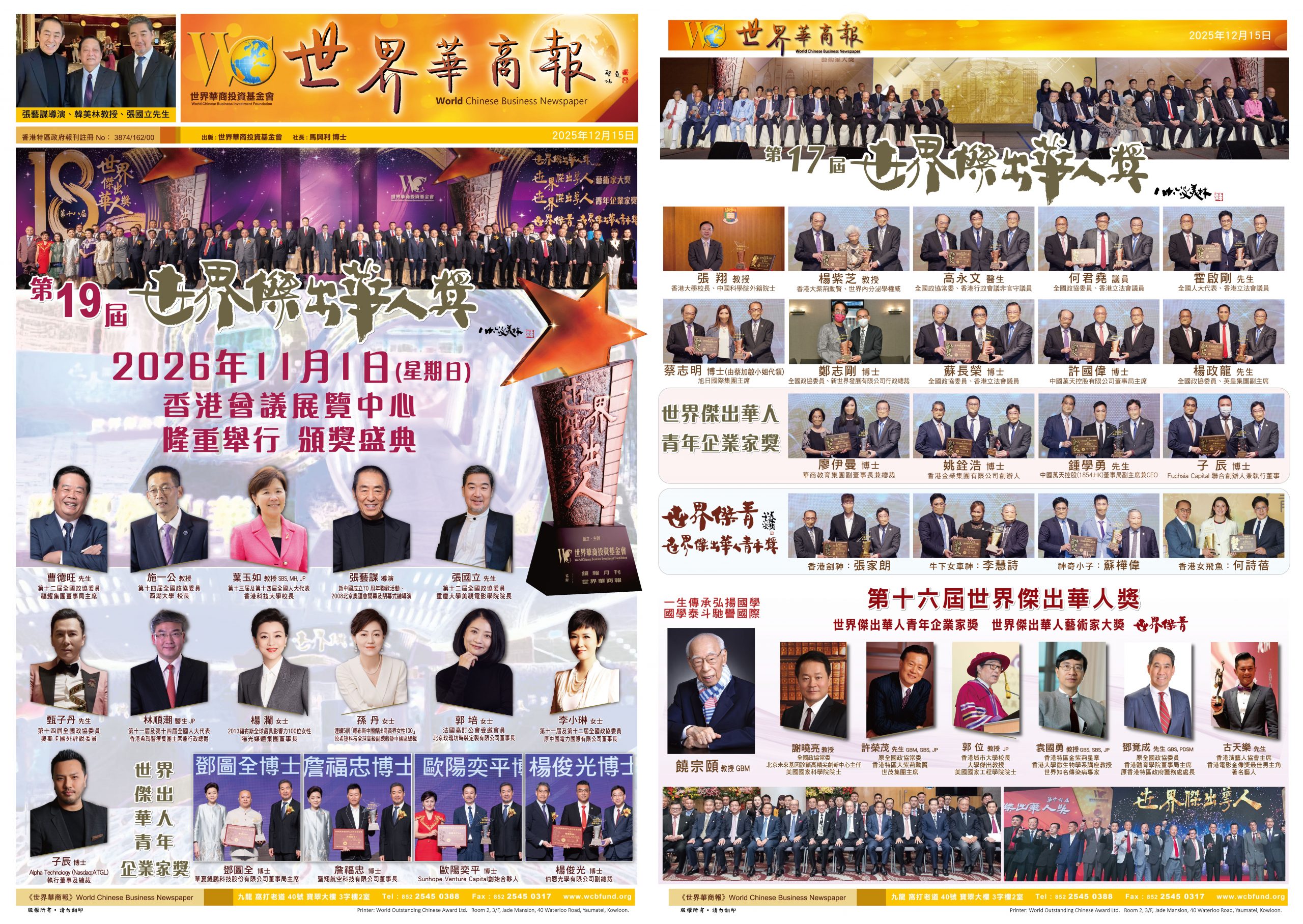 2026第十九届世界杰出华人奖将于11月在香港举行 再聚华人精英之光