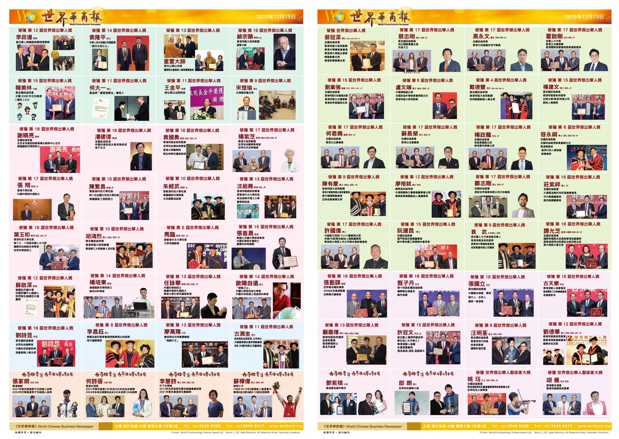 自2003年创办以来,“世界杰出华人奖”如同一位忠实的记录者,见证了无数华人精英在世界舞台上书写的辉煌篇章。2026年第十九届世界杰出华人奖颁奖典礼将于2026年11月1日(星期日)在香港会议展览中心隆重举行,再次汇聚世界华人精英之光。让我们再次回望那些曾经获此殊荣的璀璨群星,他们用智慧、勤劳与大爱,对全世界产生了深远的影响,并奠定了这一奖项的崇高地位。