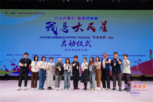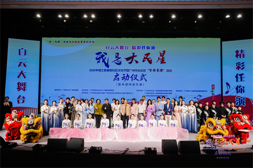 3月31日晚,“云・飞扬”白云文化欢乐季系列活动之 “白云大舞台 精彩任你演”——“我是大民星” 2026 羊城之夏基层社区文化节暨广州市白云区 “百团竞演” 活动(下文称“百团竞演”活动)启动仪式在广州设计之都设计殿堂热烈举行。现场灯光璀璨、人气爆棚,歌声与掌声交织,情怀与活力碰撞,2026年白云区“百团竞演”活动正式拉开帷幕。