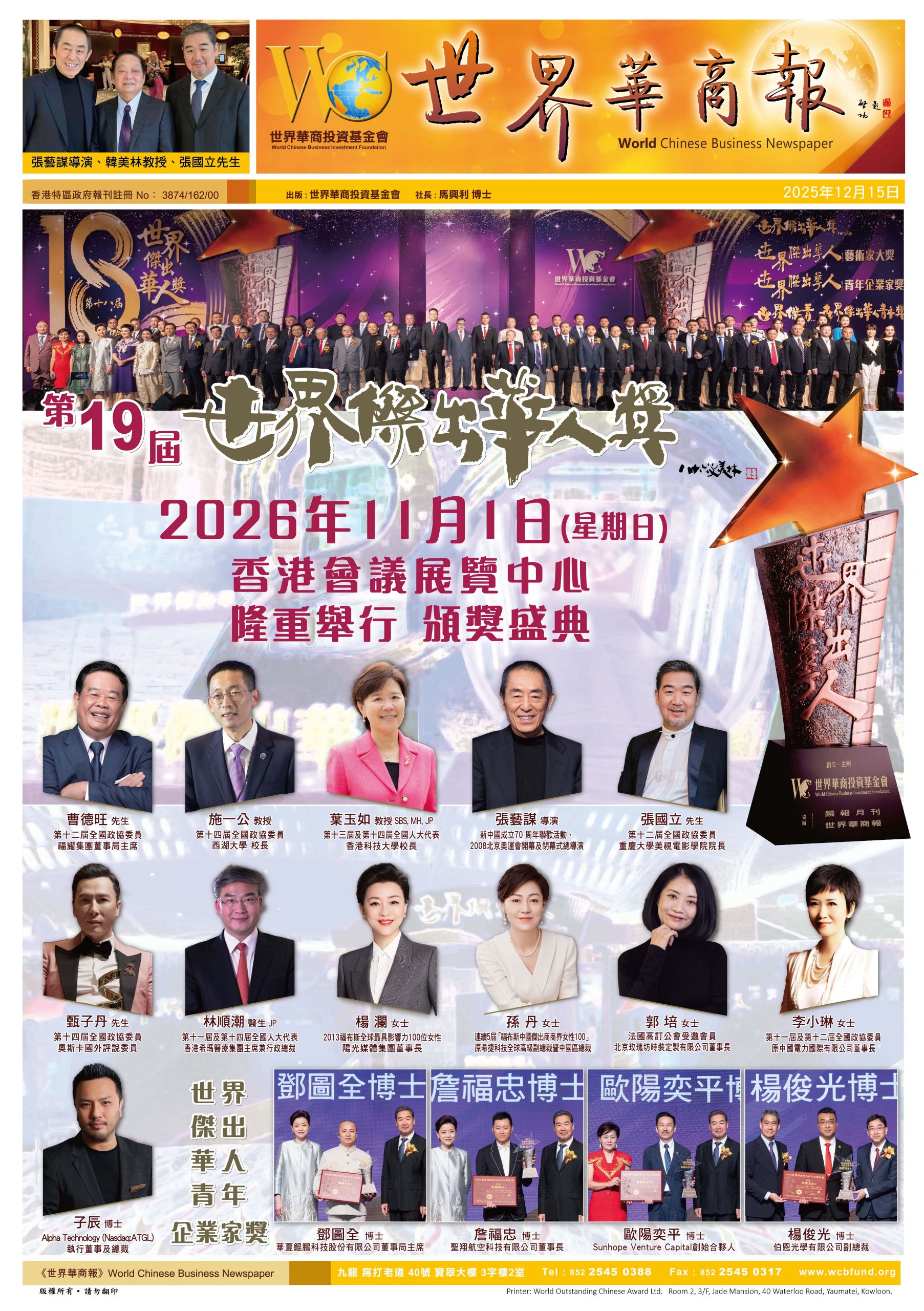 2026第十九届世界杰出华人奖:齐聚香港 共证荣耀再续华章