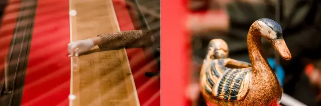 馆内不仅有“高精尖”的数字技术,也有“接地气”的“活态”展项:在史前居住场景中,能看到真正的本土小香猪活动,形象再现“家”从何来;在王羲之练字的场景中,也有他喜爱的、真正的大白鹅作为“特别嘉宾”。