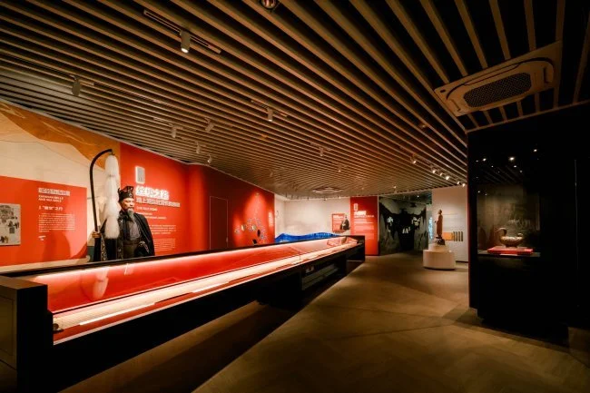 “史前-魏晋”部分,通过周口店洞穴沉浸空间、甲骨占卜互动、青铜器铸造工坊、名士与美人等展项,再现文明起源;“隋唐”部分以大运河行船、盛唐长安街景、丝绸之路驼队模型等展项、展品,展现开放帝国的气象;“宋元明清”部分,以应县木塔半包裹式三维沉浸空间、郑和宝船微缩舱、紫禁城沙盘等细致地剖析,诠释科技与艺术的巅峰;“近现代”部分,通过“复兴之路”历史文献墙、“大国重器”互动墙等,梳理民族复兴历程。